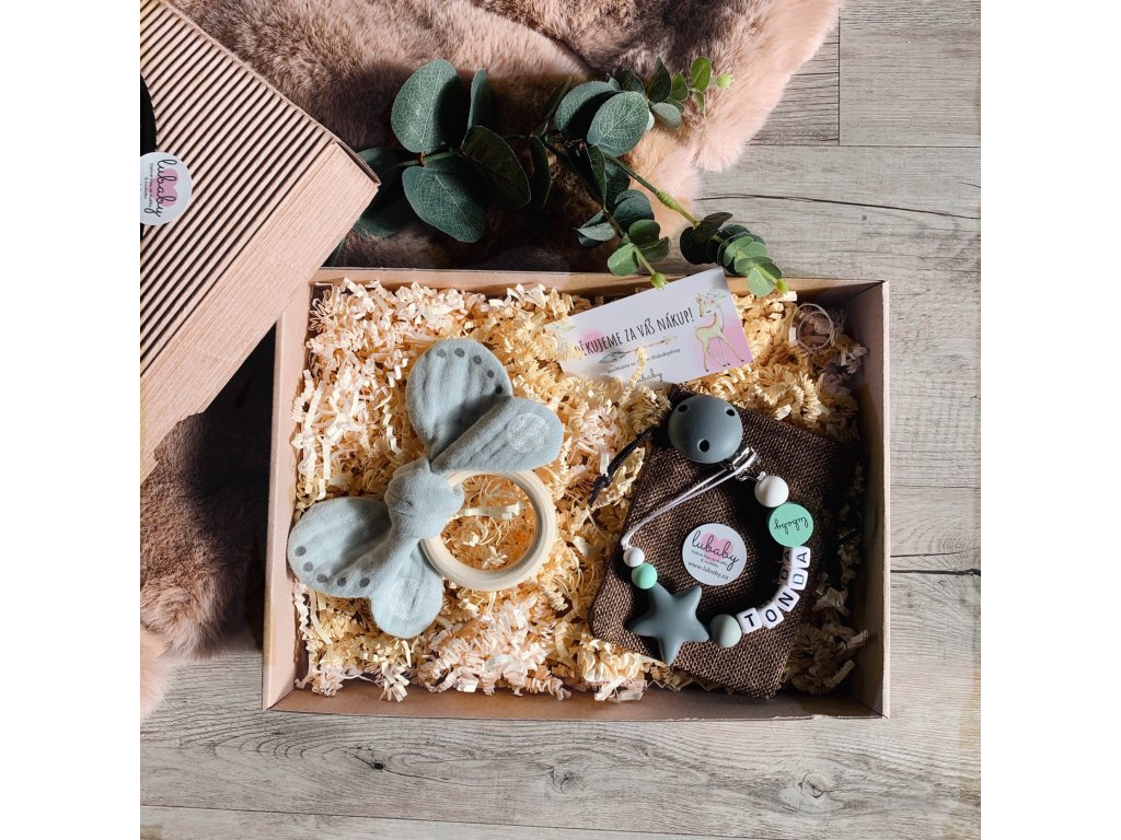 Vol. 1 - lubaby klip dle výběru z eshopu a ušák mazlík v barvách MINT nebo baby BLUE vč. natur/hnědý sáček na klip